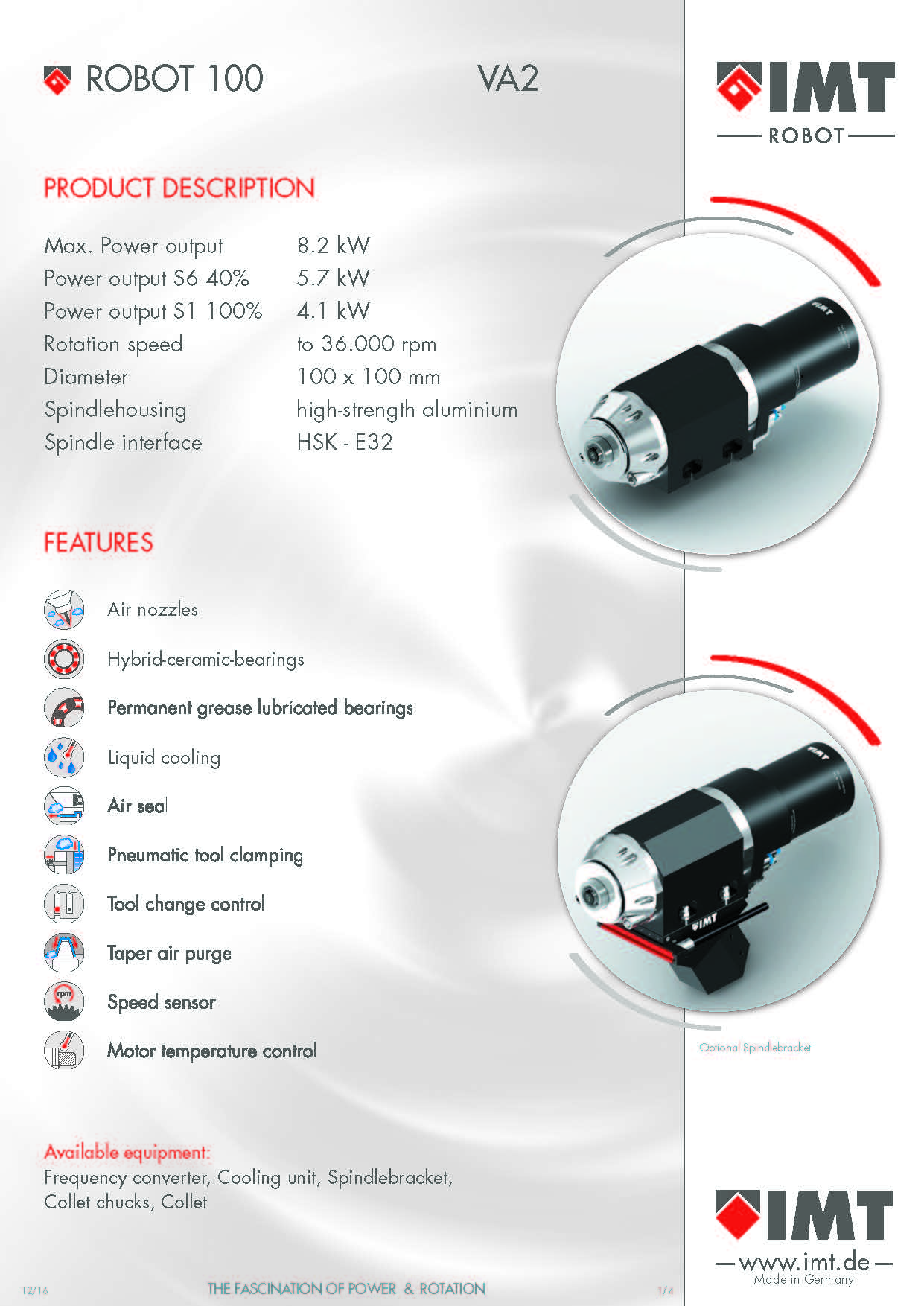 配置:主轴底座AP2(线缆、气管、水管整合接入底座并连通主轴,通过几个螺丝锁紧至机器人末端)、离子风棒(离子风刀除静电除静电)、ATC刀具状态监测系统